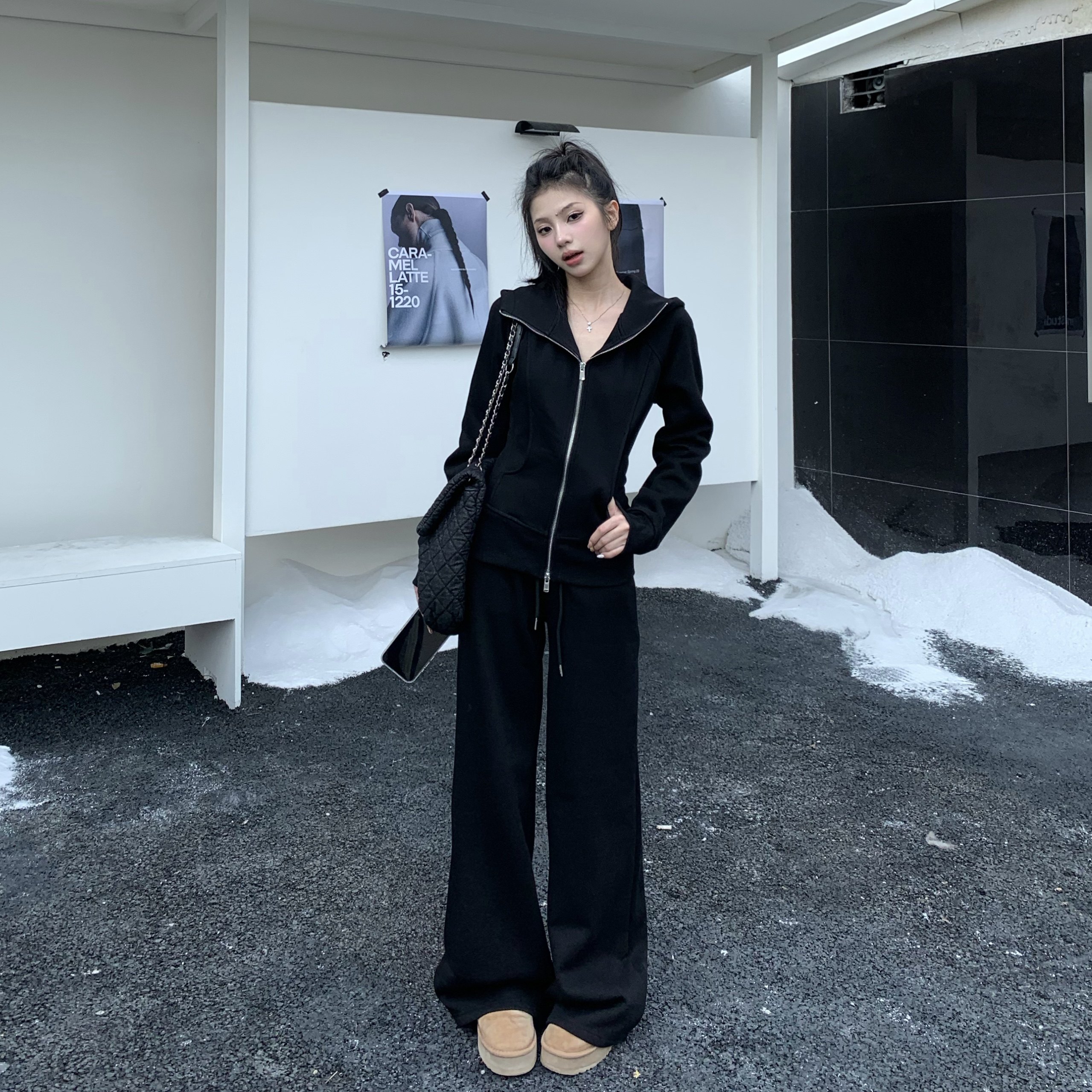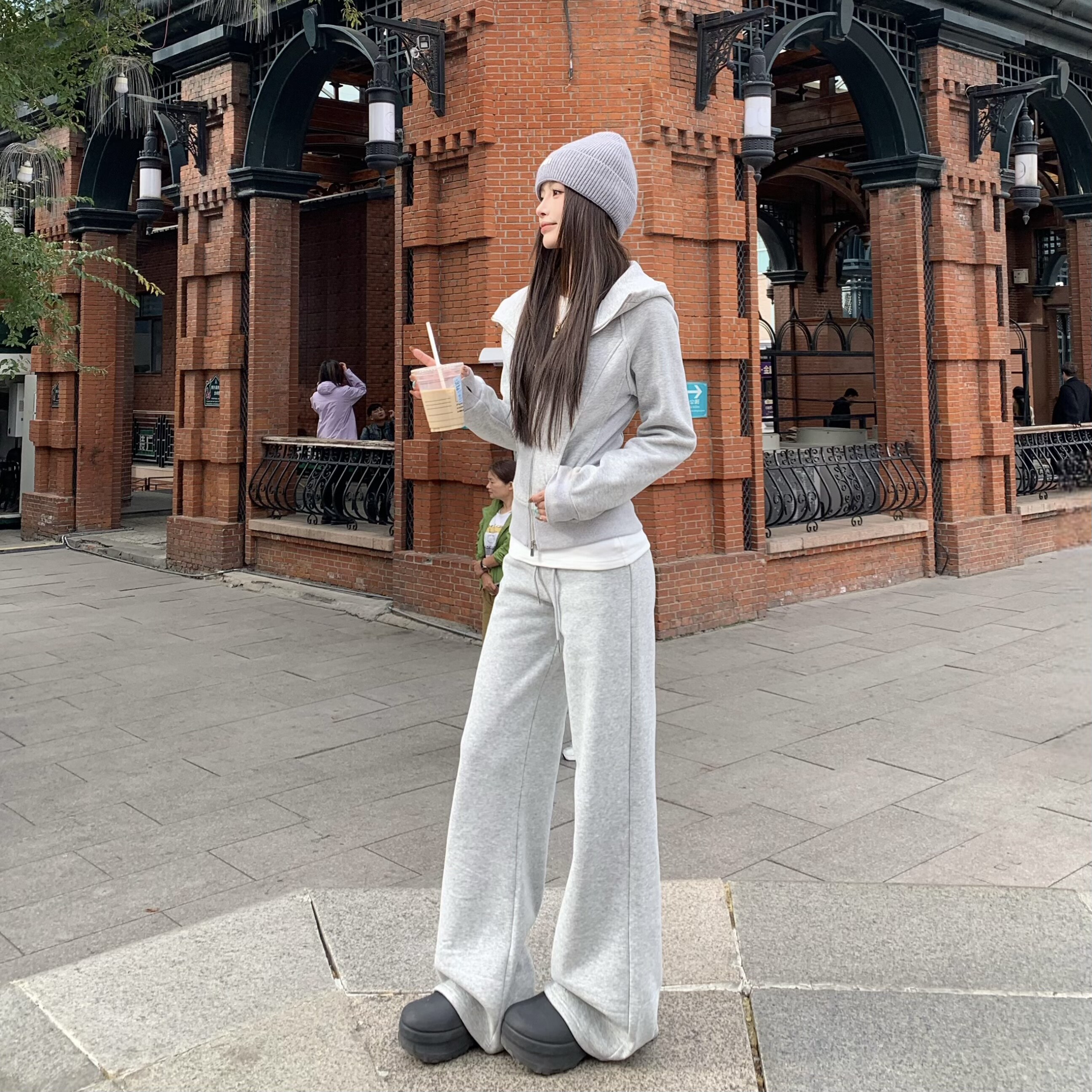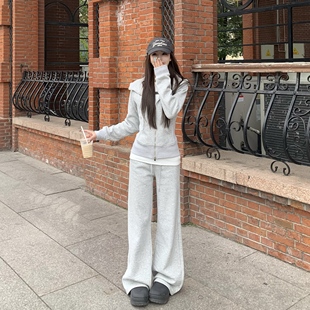 女修身 套装 两件套 卫衣长裤 3MER哦哦三妹lulu加绒显瘦运动连帽开衫