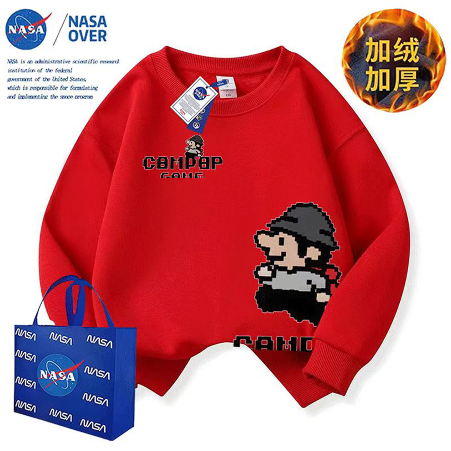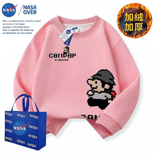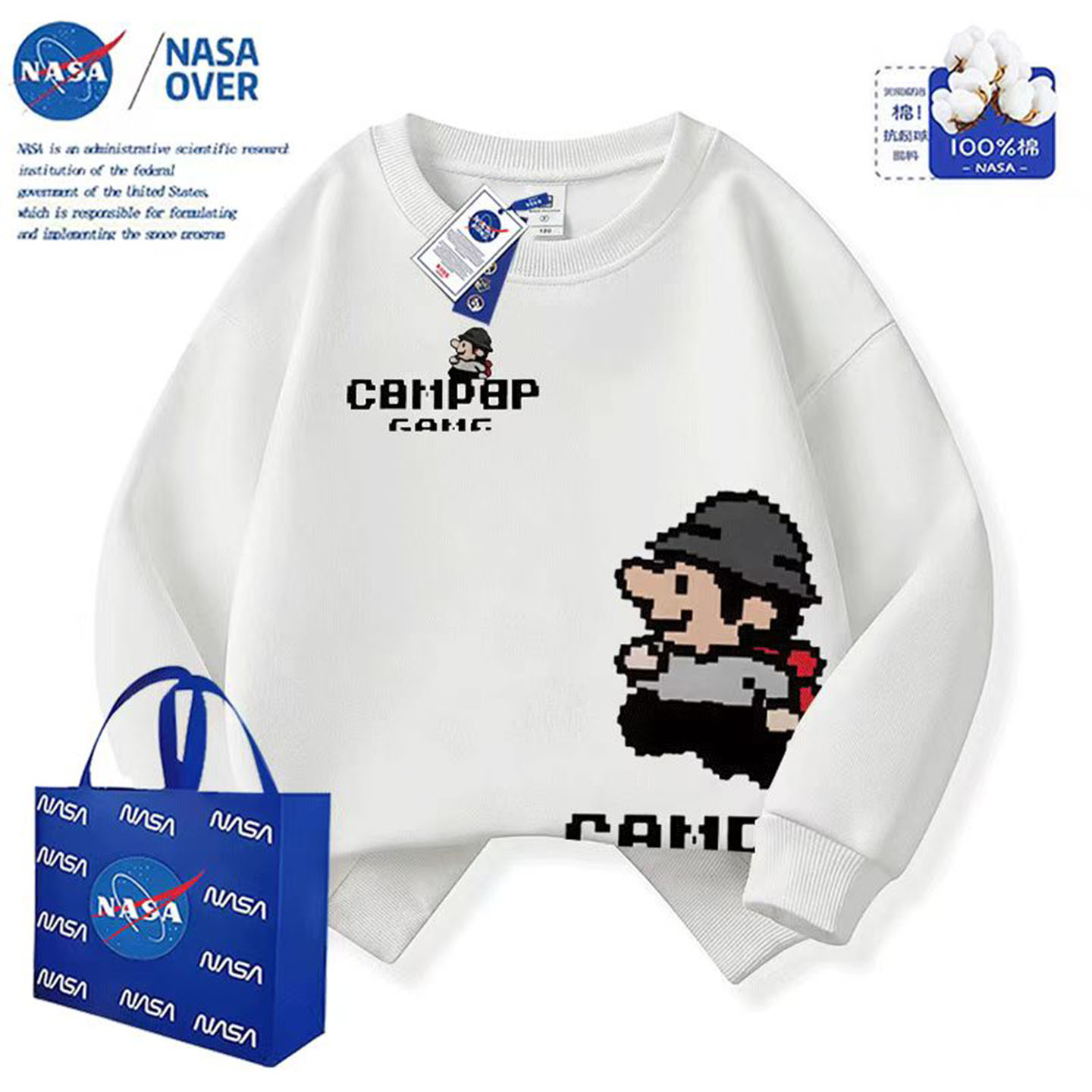 NASA联名日系卡通像素人春秋新款 男女中大童百搭圆领卫衣洋气上衣