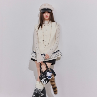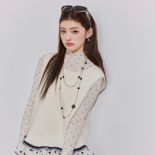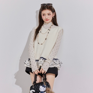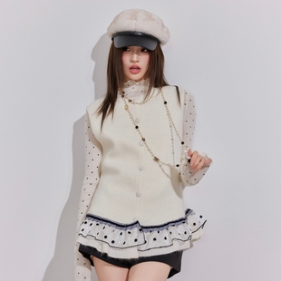 OTEBANBASS法式 小香风网纱波点荷叶边含羊毛马甲针织背心上衣女