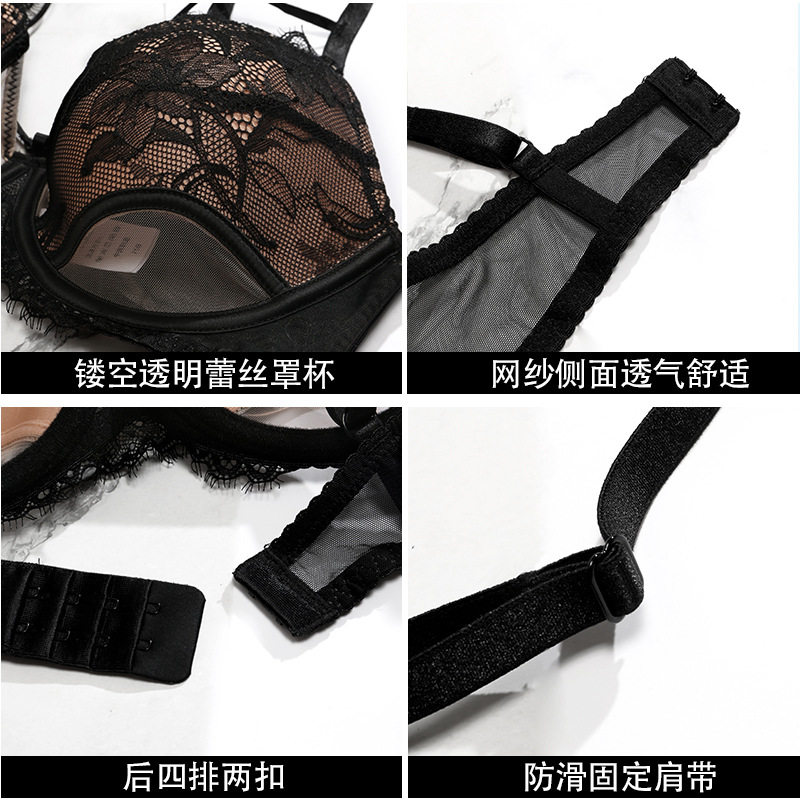 纯欲网纱大码 薄款 文胸罩 性感蕾丝内衣大胸显小防下垂内衣夏季 法式