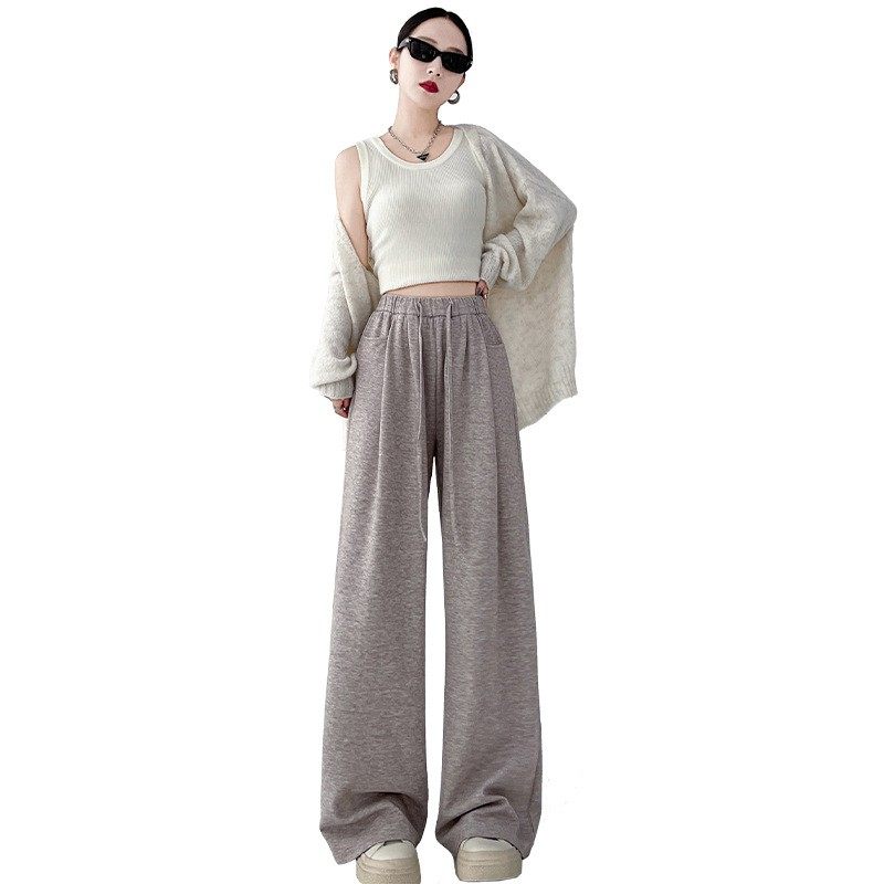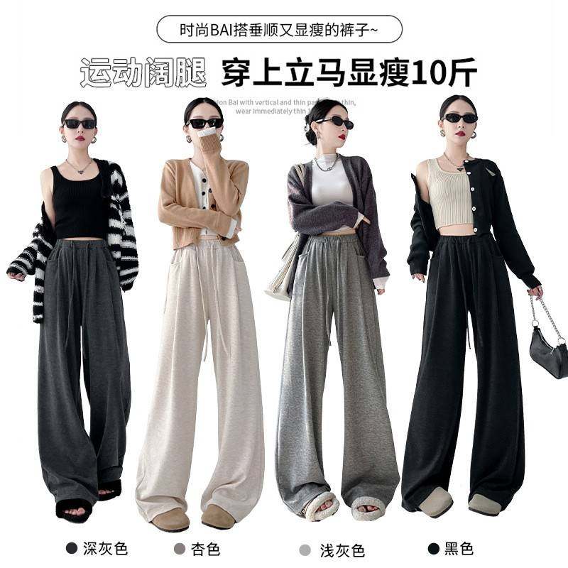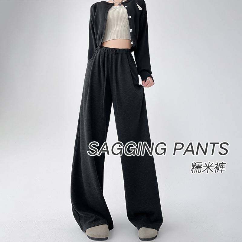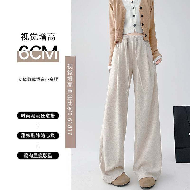 高腰垂感直筒宽松慵懒休闲阔腿裤 灰色糯米裤 女秋冬加绒新款