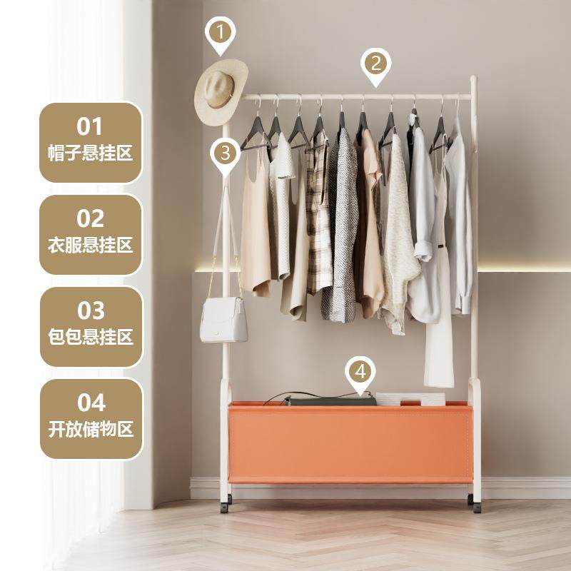 奶油风家用可移动衣帽架卧室客厅落地挂衣架网红简易大容量收纳架