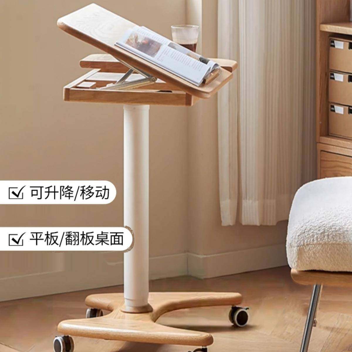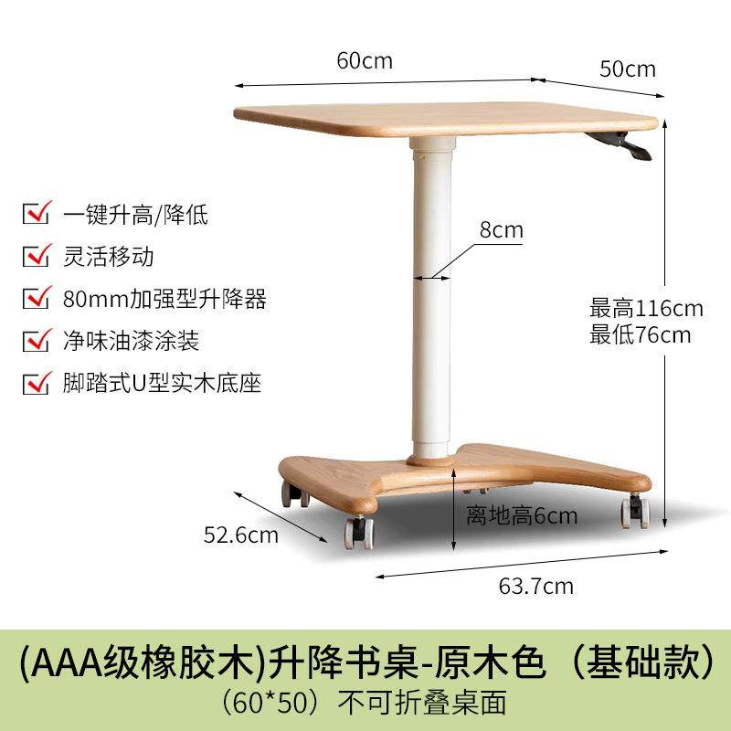 实木移动升降厅书桌可折叠气动儿学习童橡木床HBR边电脑桌客小桌