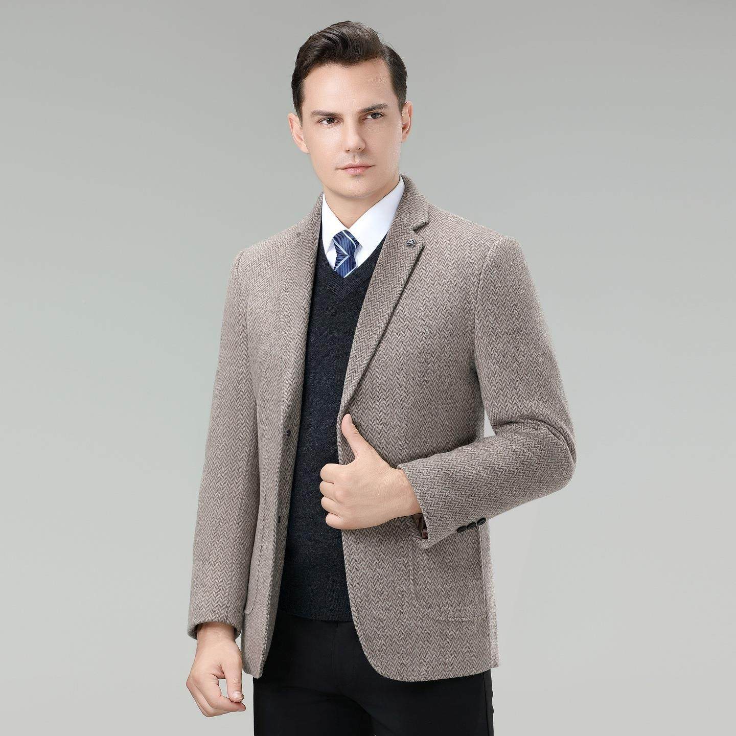 西装 过膝双面羊绒外套 领毛呢子风衣 中长款 纯羊毛双面呢大衣男士