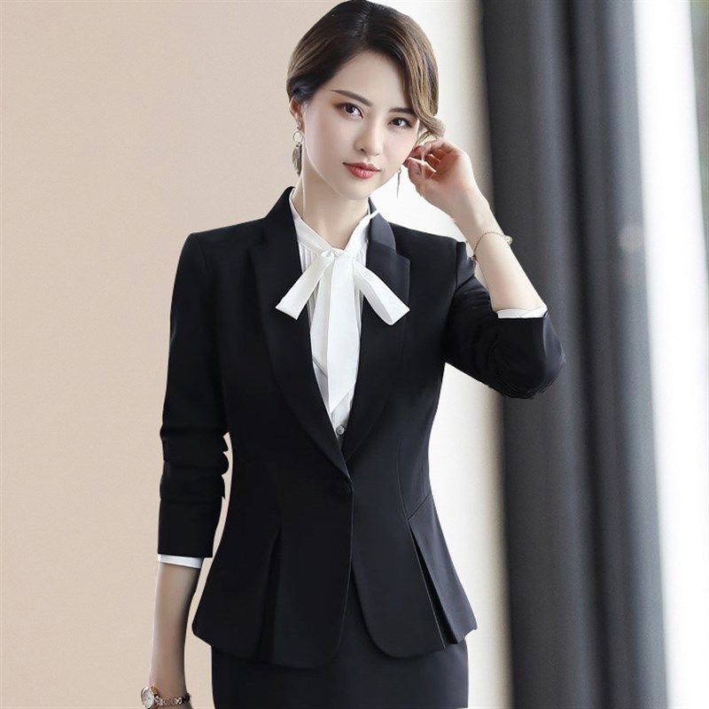 酒店餐饮服务员工装 长袖 美容院工作服女套裙 女士西装 秋天职业套装