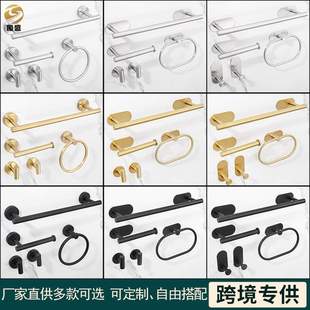 浴室毛巾架套装 拉丝订做 304不锈钢卫浴五金挂件套餐毛巾杆架组合