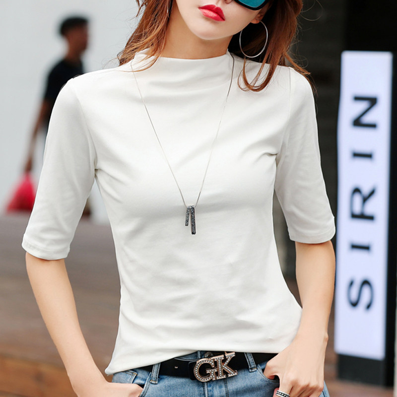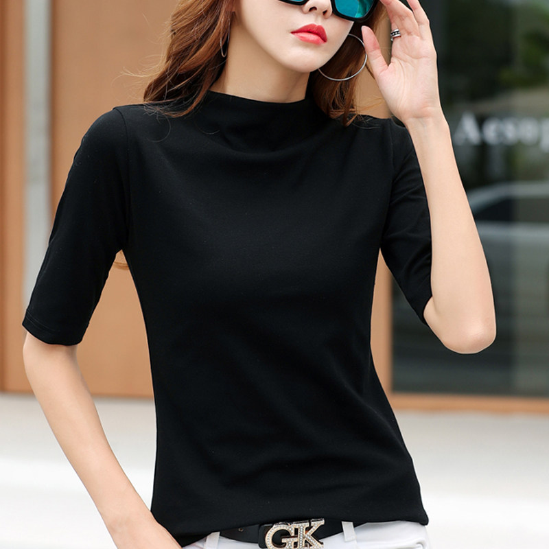 新款 咖色内搭洋气短袖 中袖 女修身 T恤女上衣 半高领打底衫 2020秋装