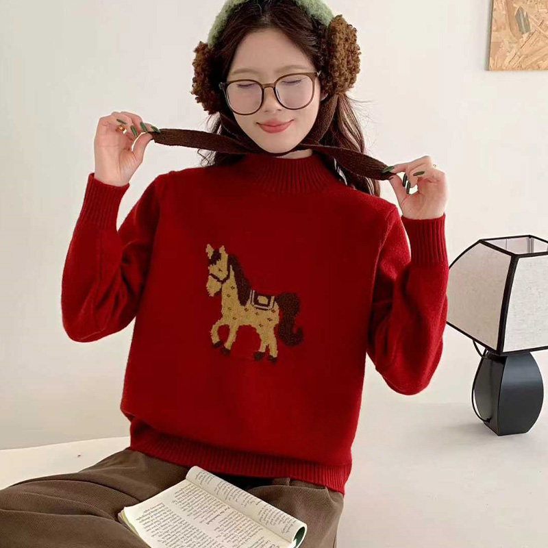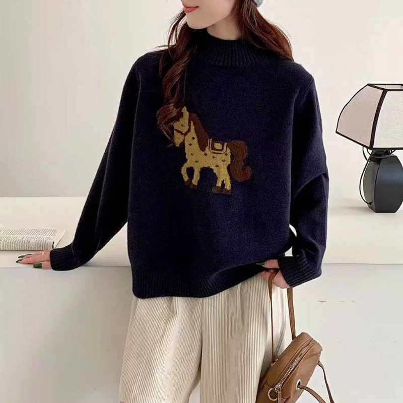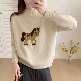 针织打底衫 品牌高级感羊毛衫 女半高领宽松毛衣秋冬加厚羊绒长袖