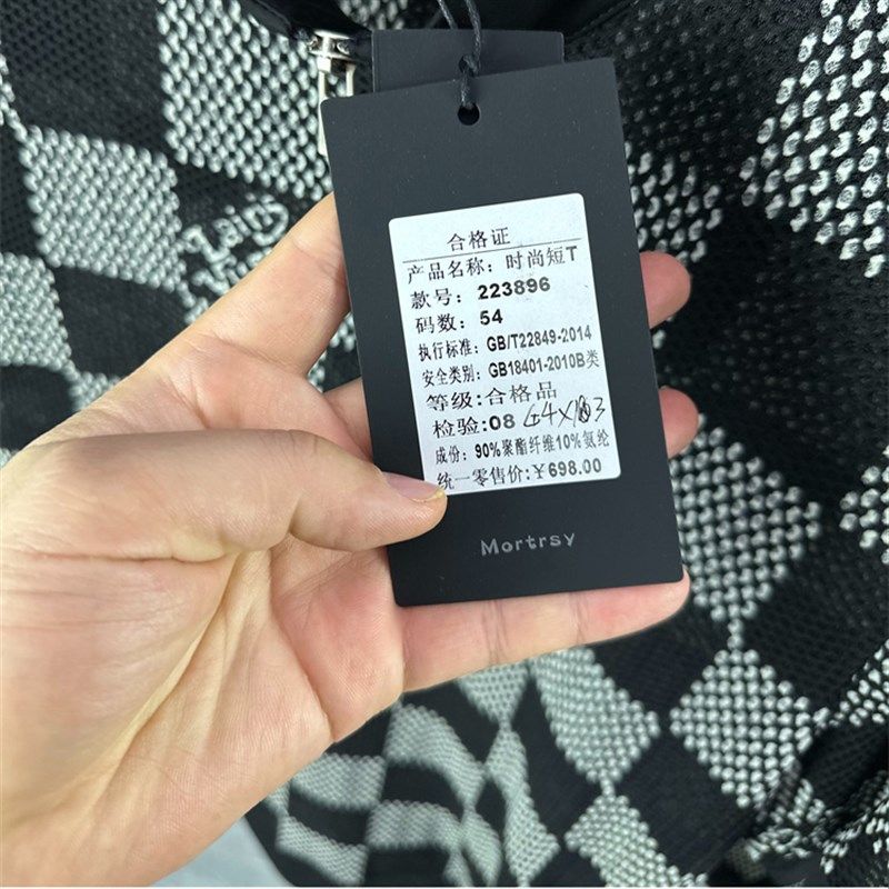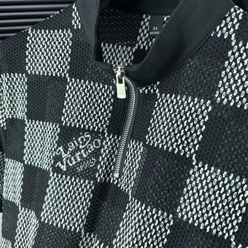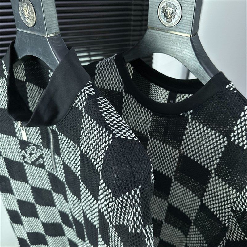 舒适半袖 品质大叔 大码 T恤衫 潮男X13 黑白棋盘格透气立领拉链短袖