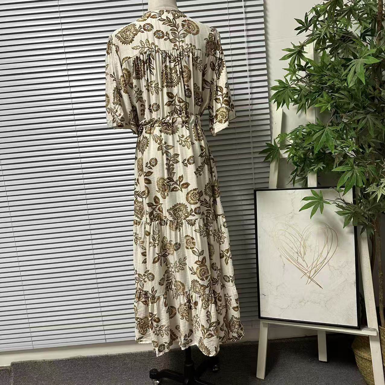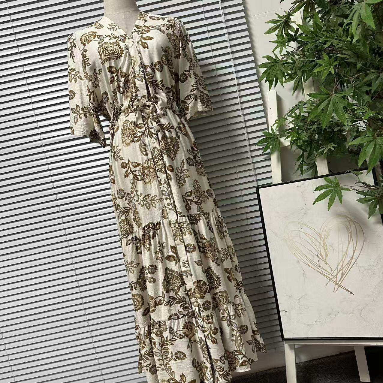 印花连衣裙女海岛裙度假 NanaJacqueline挂脖花边长款 李梦同款