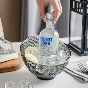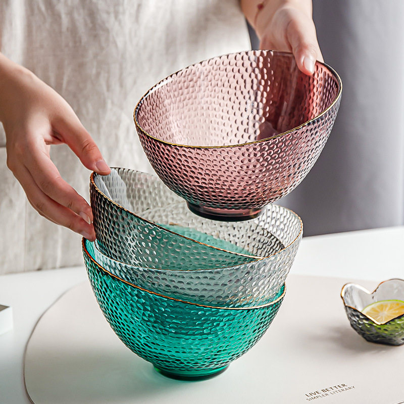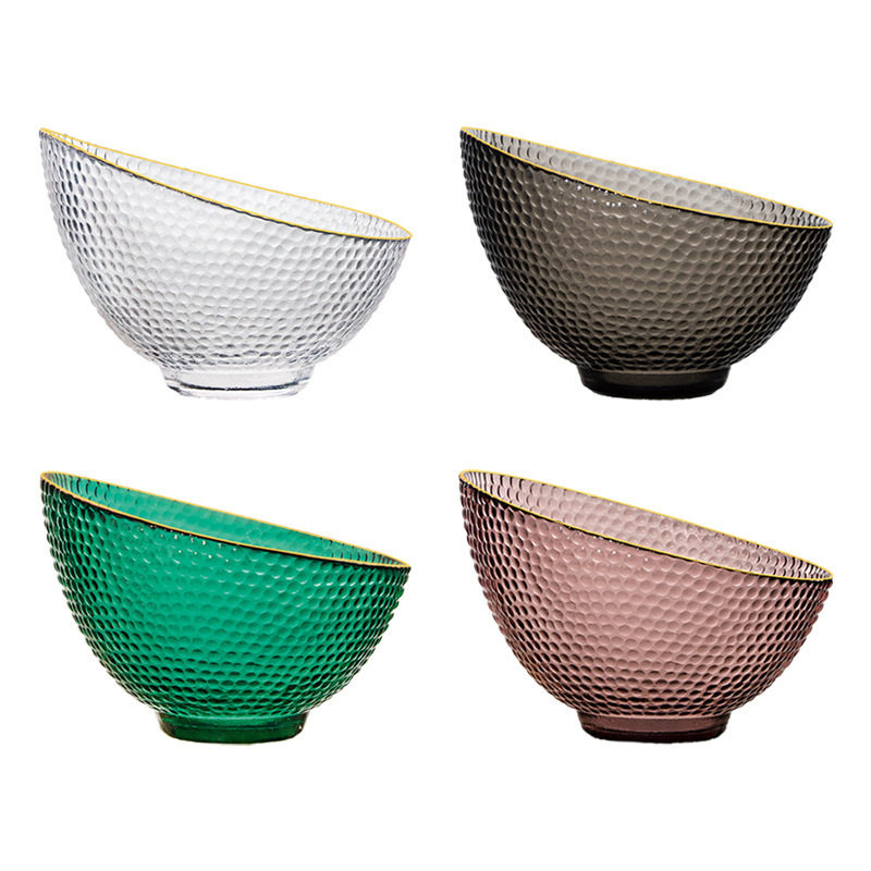 创意风斜口玻璃碗家用透明沙拉碗自助餐展示盘餐具水果碗
