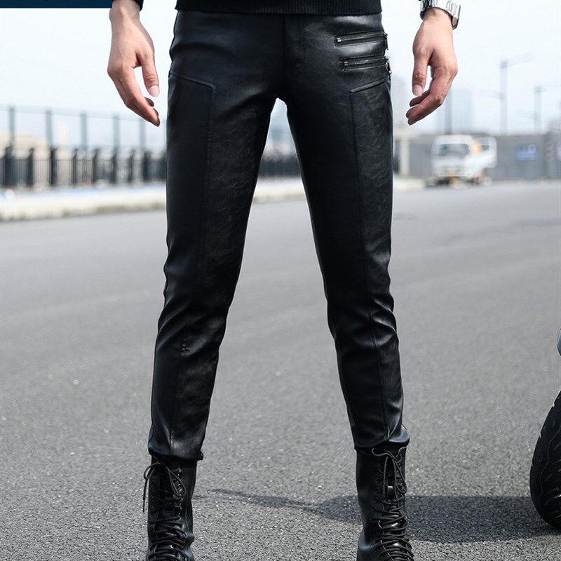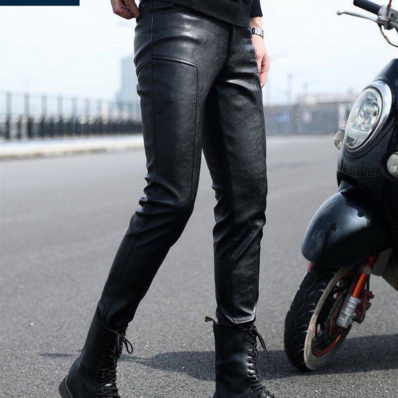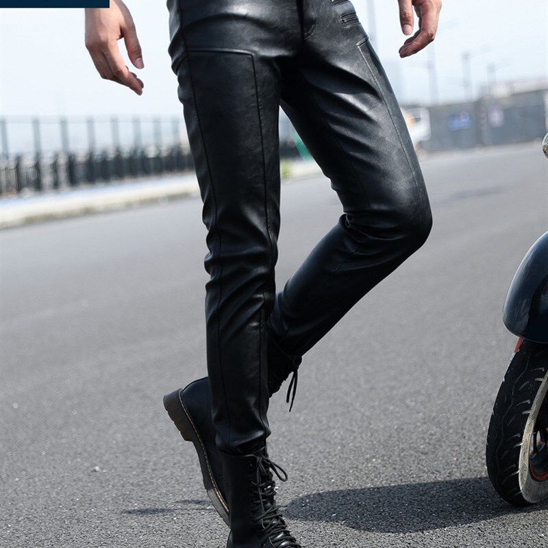 男修身 皮裤 机车皮裤 紧身弹力摩托车皮裤 男加绒加厚2022新款
