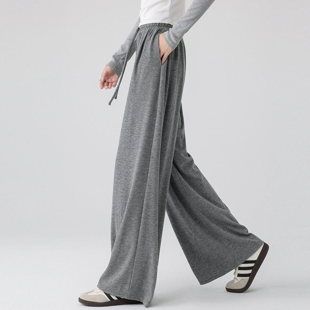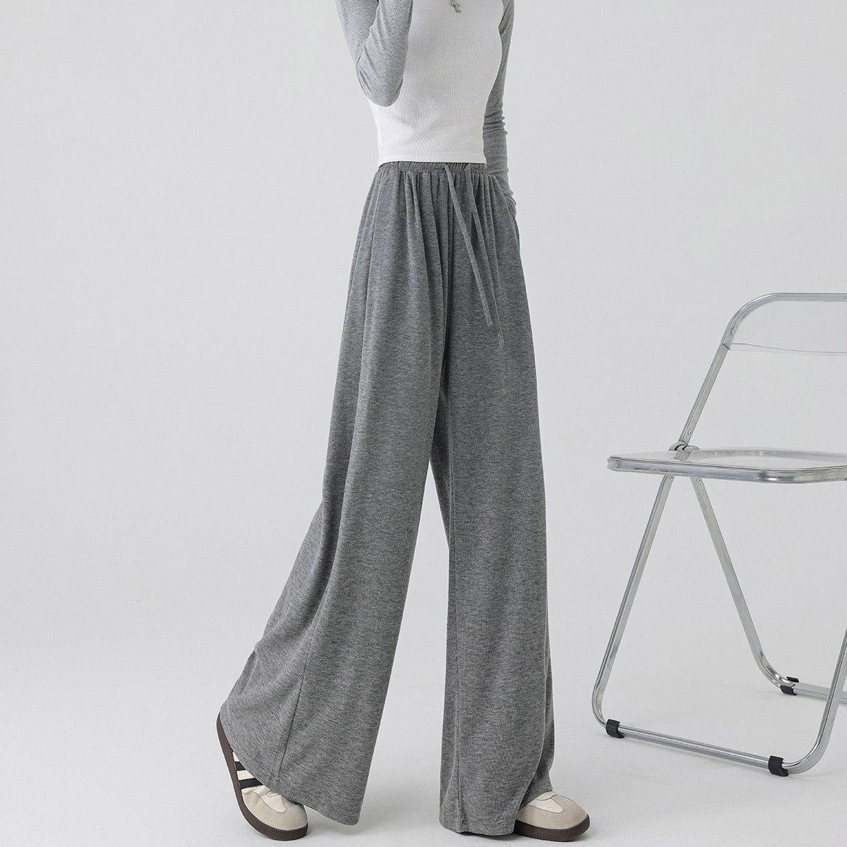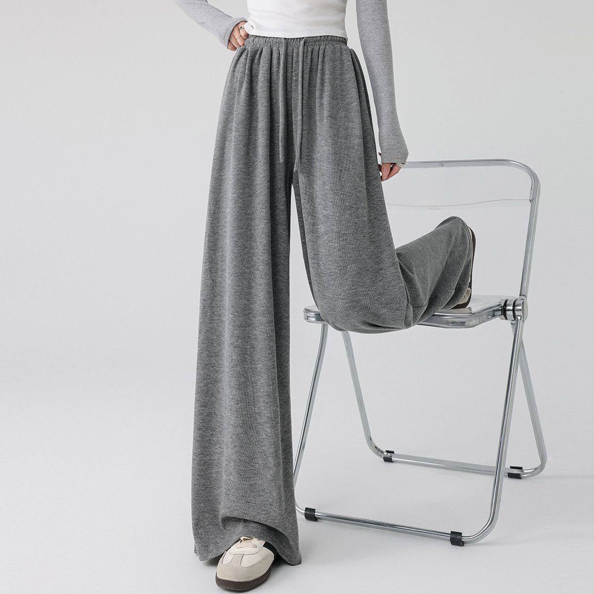 直筒休闲裤 显瘦宽松慵懒风阔腿裤 子 女2025春秋糯米裤 浅灰色阔腿裤