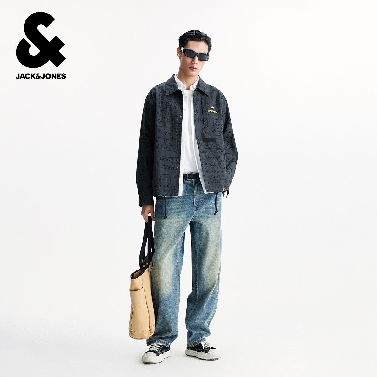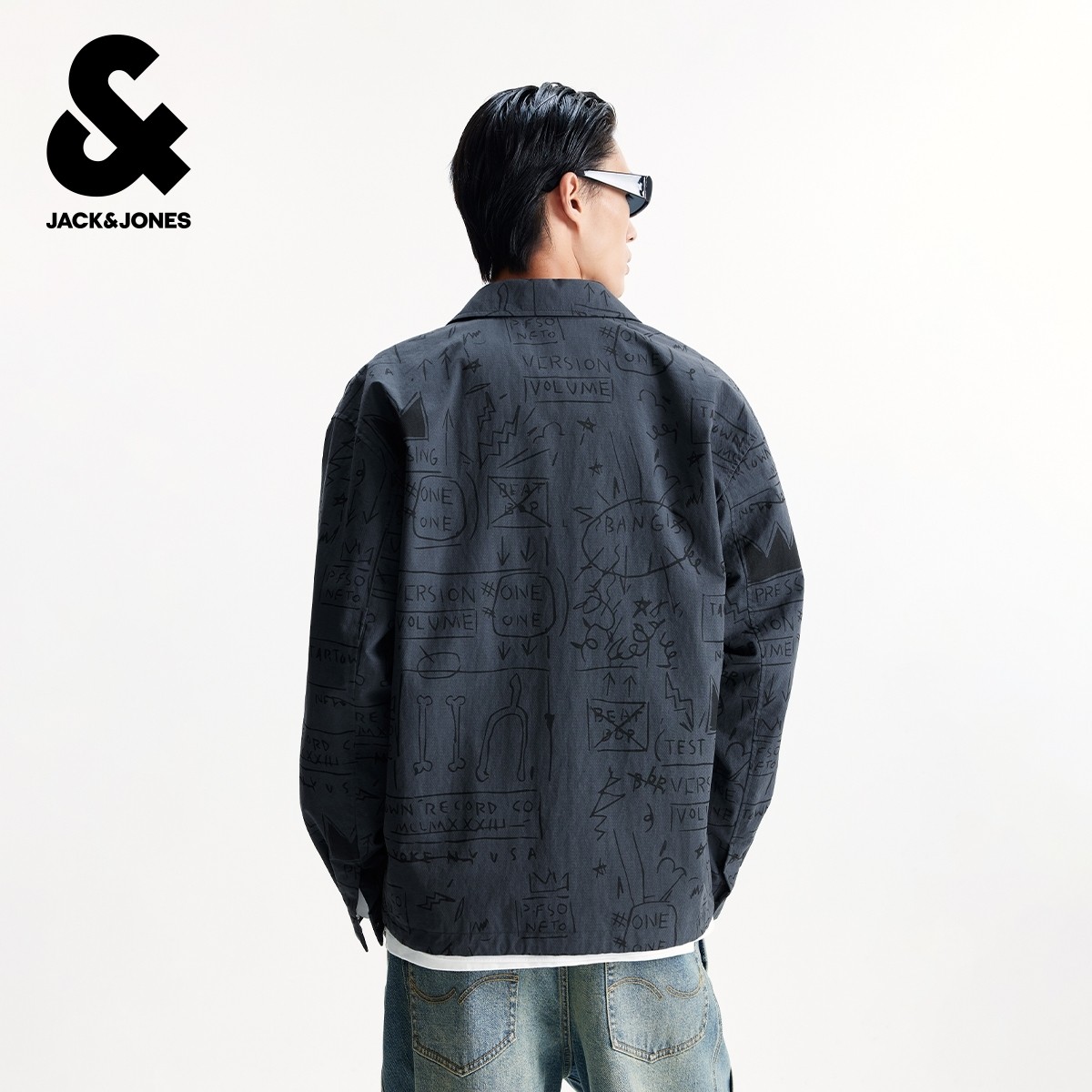 时尚 冬新款 满印宽松休闲翻领夹克外套 男装 杰克琼斯BSQ联名款