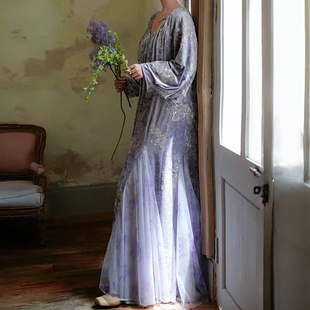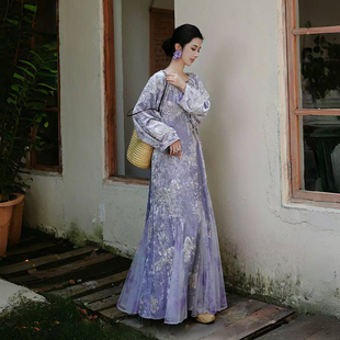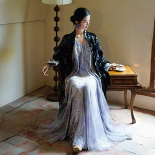 重磅九染金丝绒手工珠片绣连衣裙 新中式 澄渔高定 紫棠凤鸣