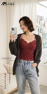 马甲线2代保暖背心秋冬磨毛蕾丝吊带女带胸垫外穿红色打底衣6100
