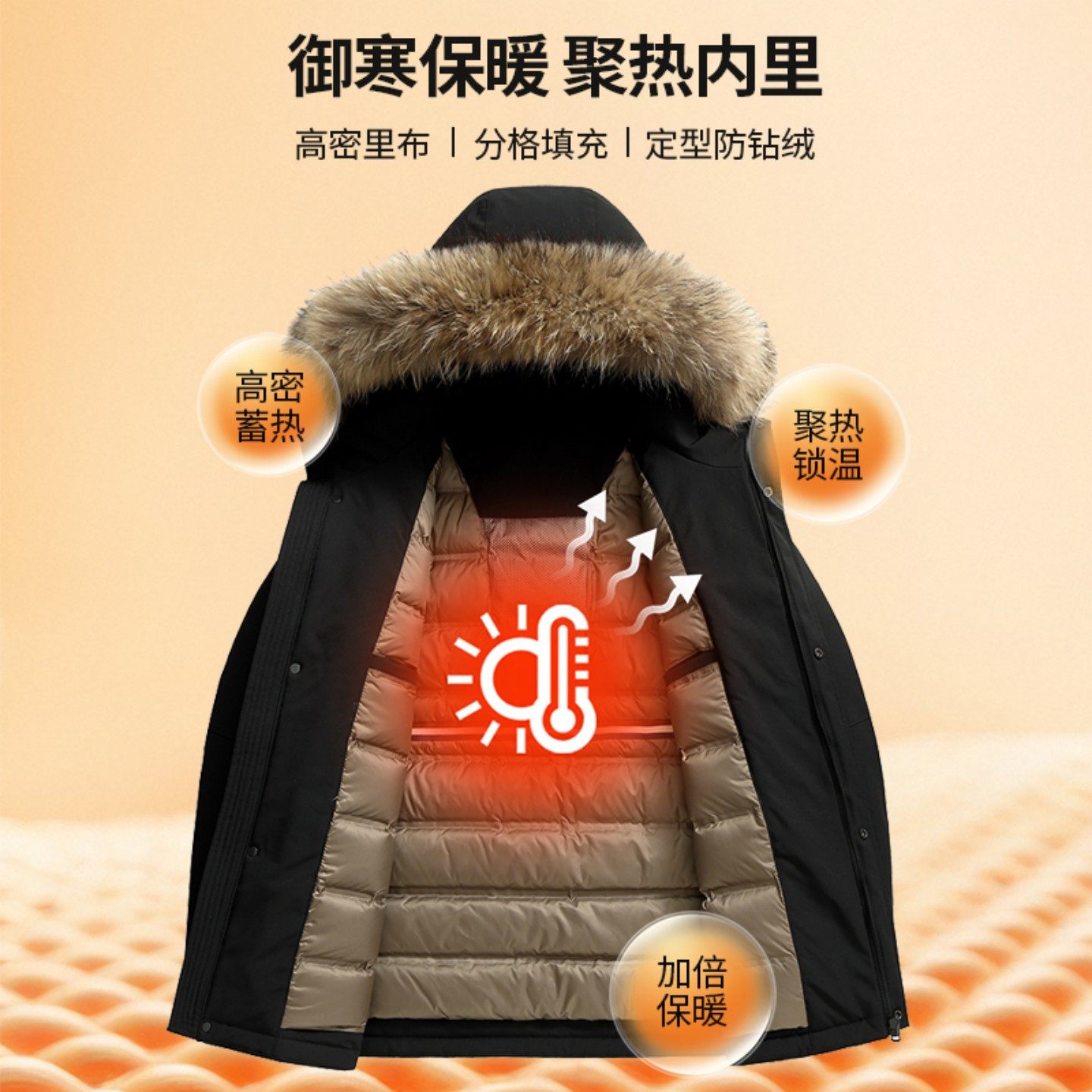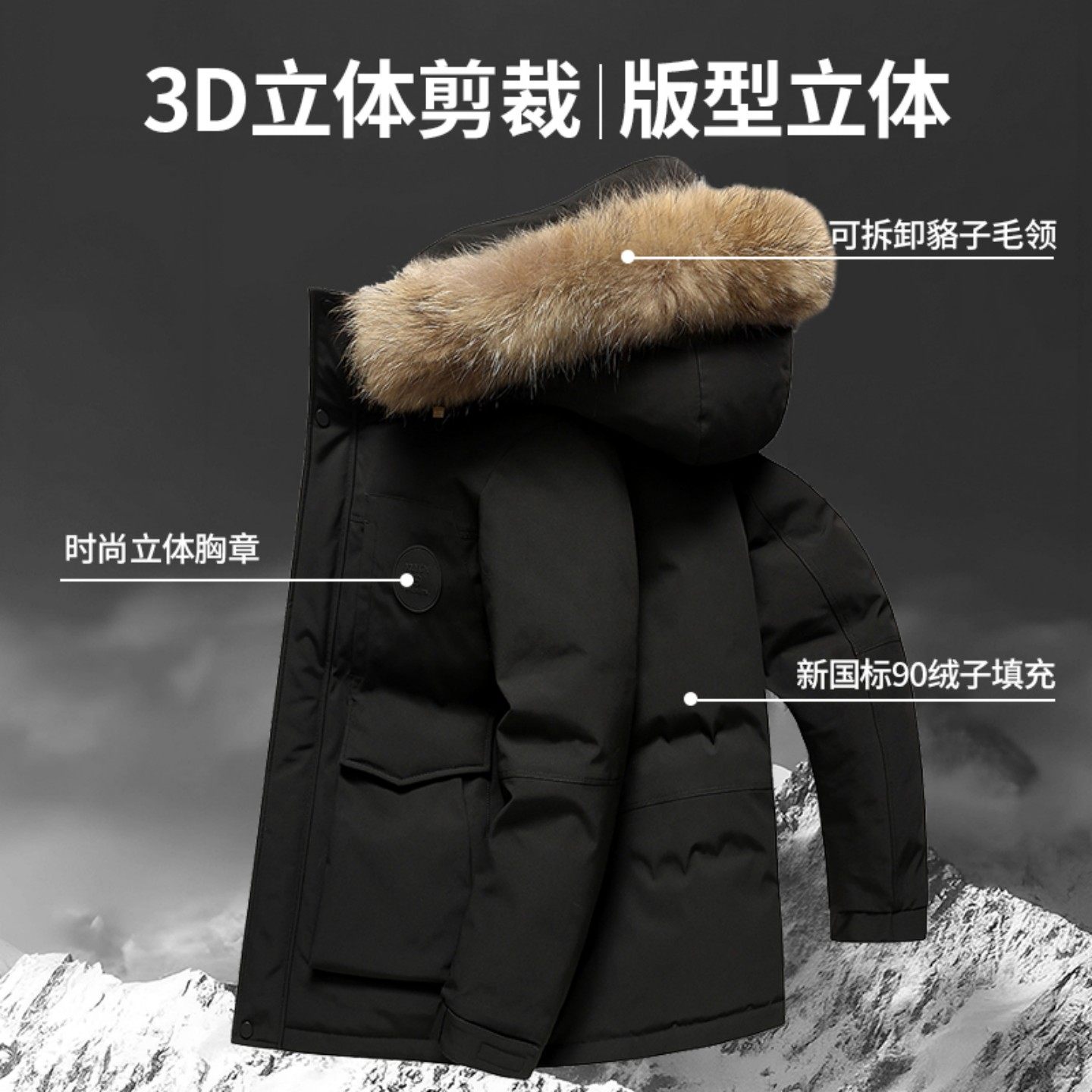 派克服男冬季 大毛领工装 保暖外套 羽绒服中长款 雪中飞加厚极寒男士