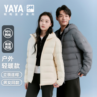 连帽保暖防寒外套男情侣款 鸭鸭漫步系列排骨轻薄羽绒服女短款 冬季