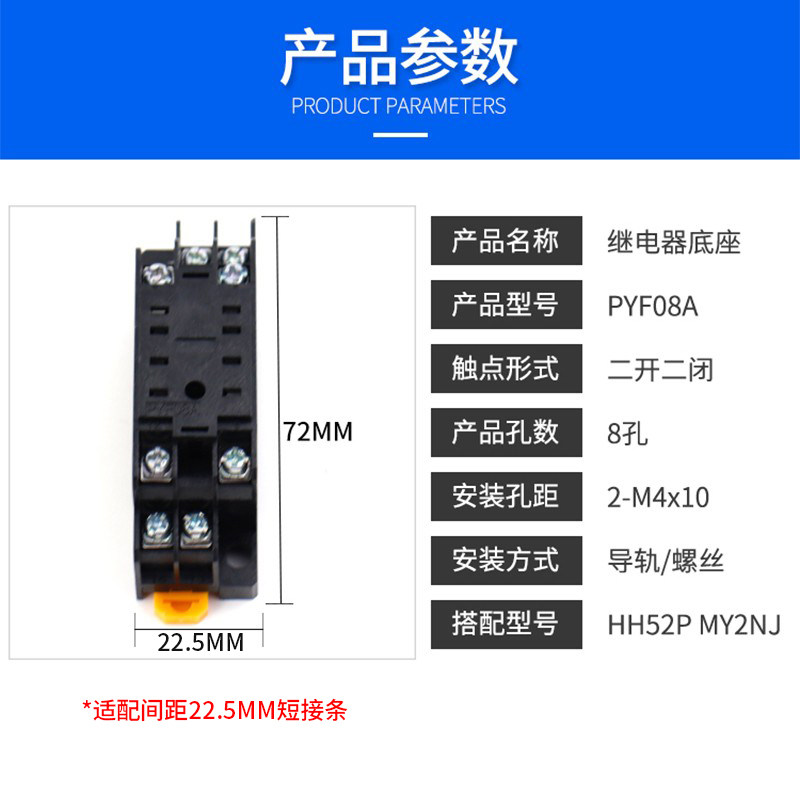 PYF08A电磁继电器小型底座 MY2NJ小八脚座子 HH52P座