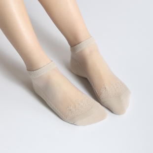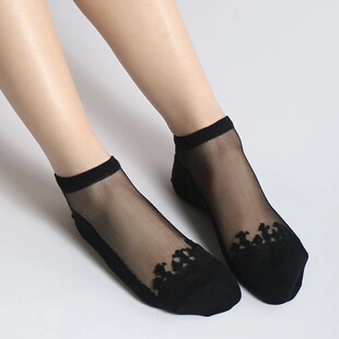 袜子女春夏季 透明纯棉底浅口玻璃冰丝袜短筒水晶蕾丝花边短袜 薄款