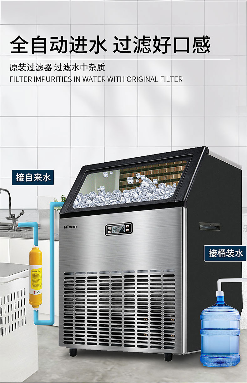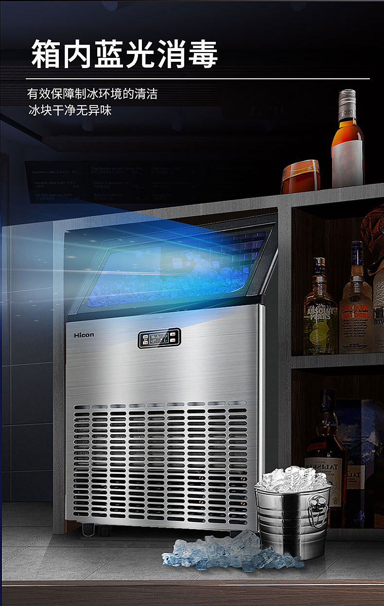 Hicon惠康制冰机大型商用奶茶店80KG 150KG全自动方冰块制作机器