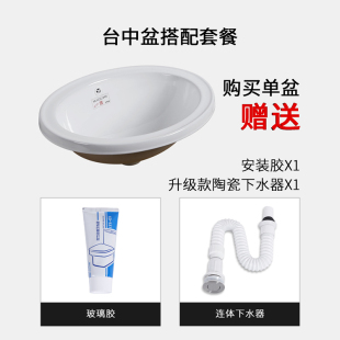 单盆陶瓷一体洗手盆洗脸盆卫生间台面洗漱盆半嵌入式 台中单独柜盆