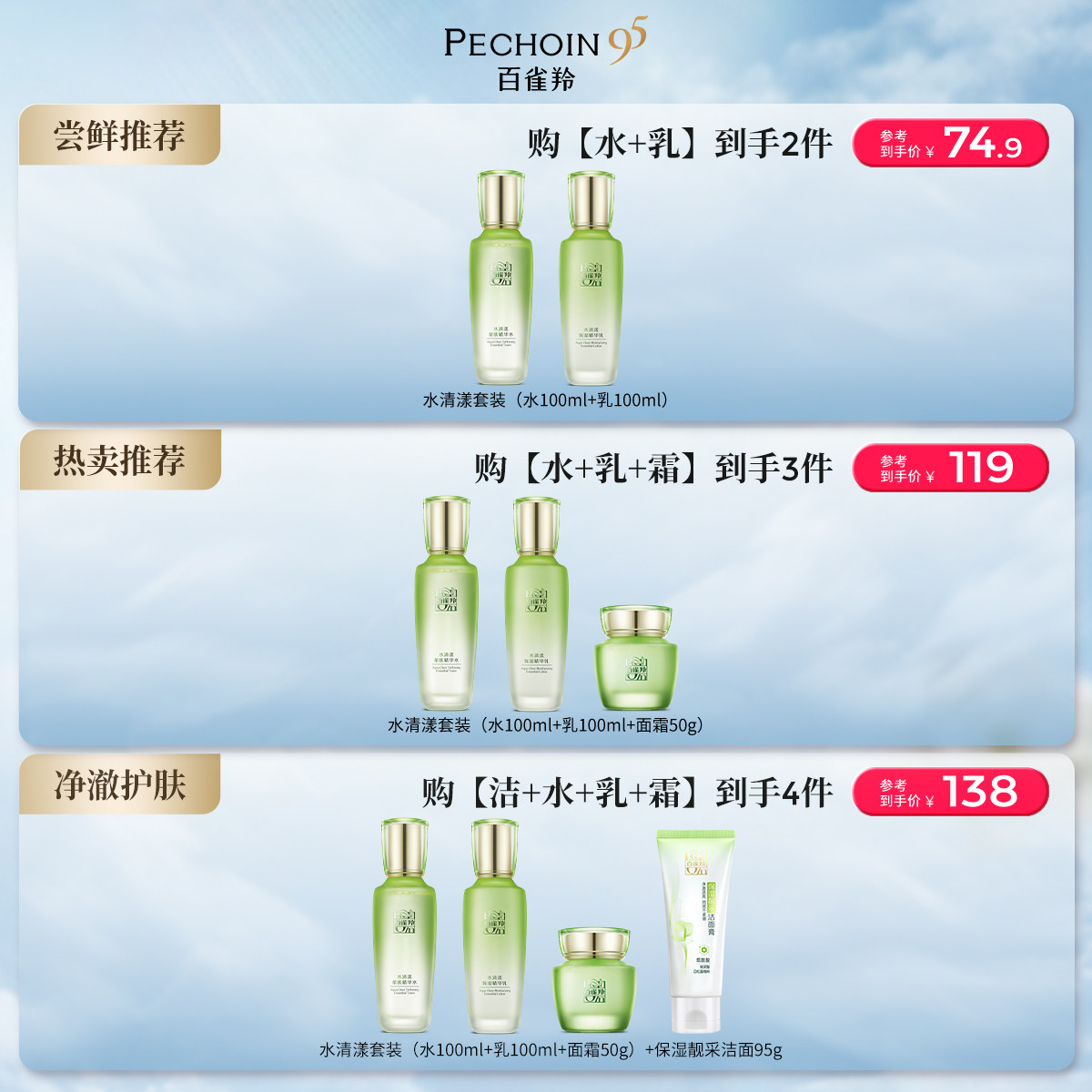 草本补水保湿 百雀羚水清漾水乳套装 护肤品官方正品 立即抢购