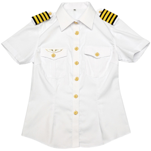 女飞行员服带肩章 乘务员服装 航空制服衬衫 国航制服女机长衬衣短袖