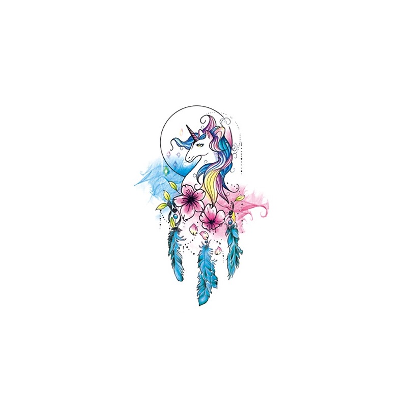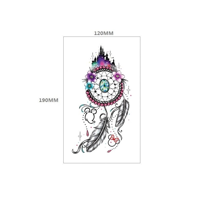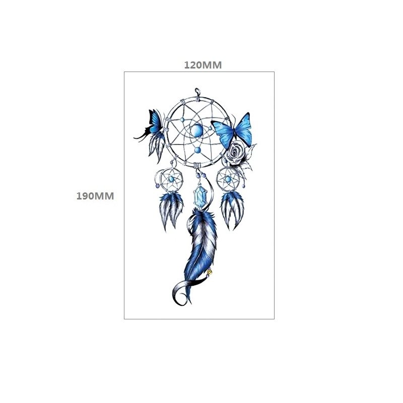 蓝色捕梦网彩色羽毛女生仿真持久手臂腿遮痕防水身体彩绘纹身贴纸