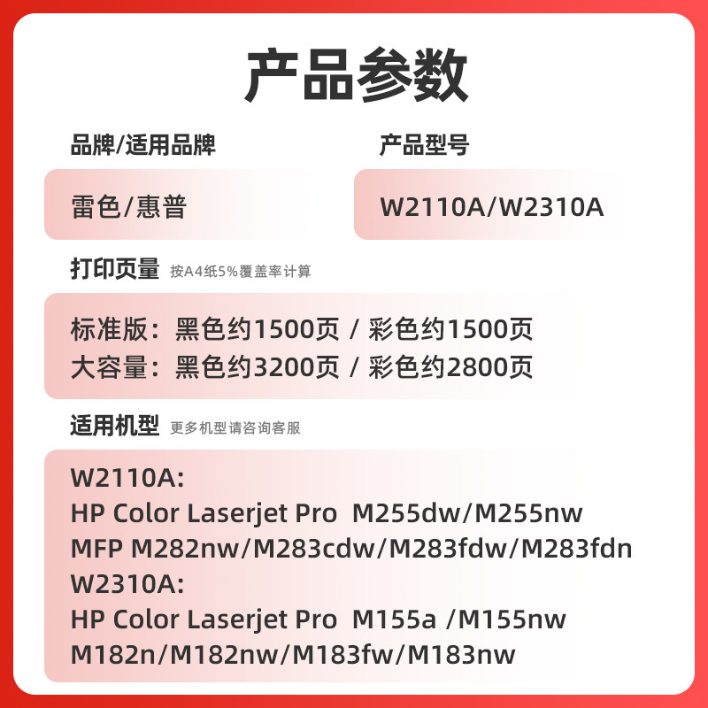 M283fdn 适用惠普M283fdw硒鼓M282nw M255nw碳粉M283cdw W2110A打印机墨盒M255dw W2210A彩色粉盒207A HP206A