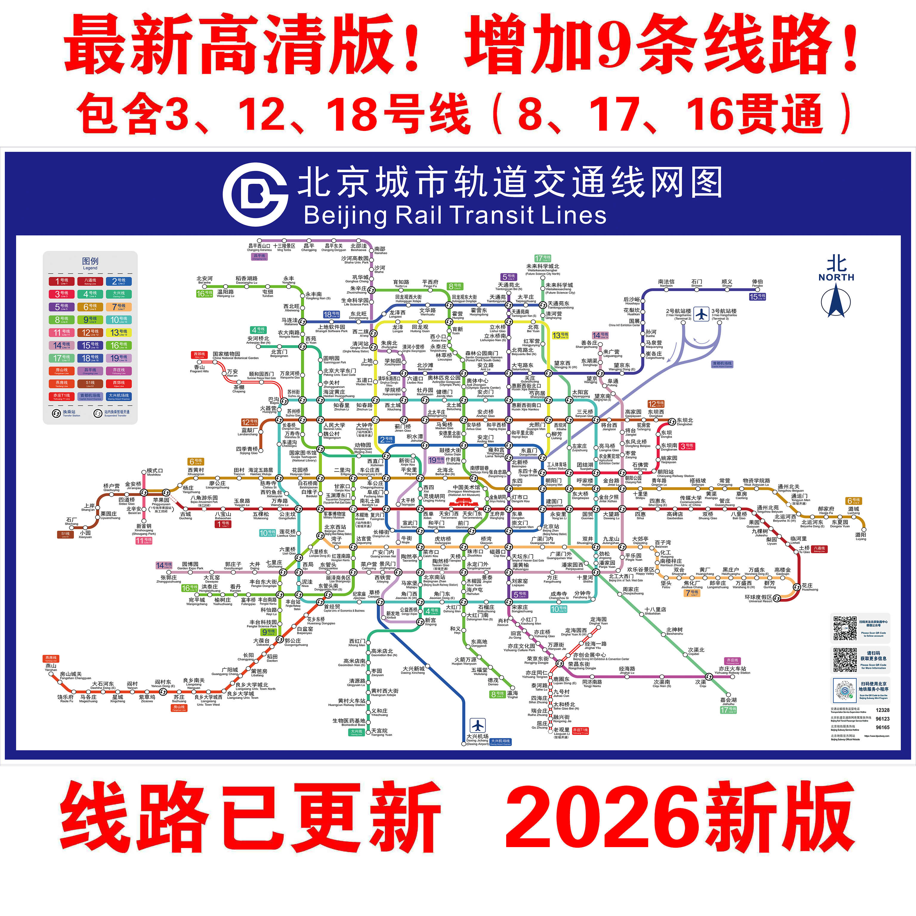 2026新版 北京地铁换乘线路图海报轨道上海交通出行挂图规划图定制