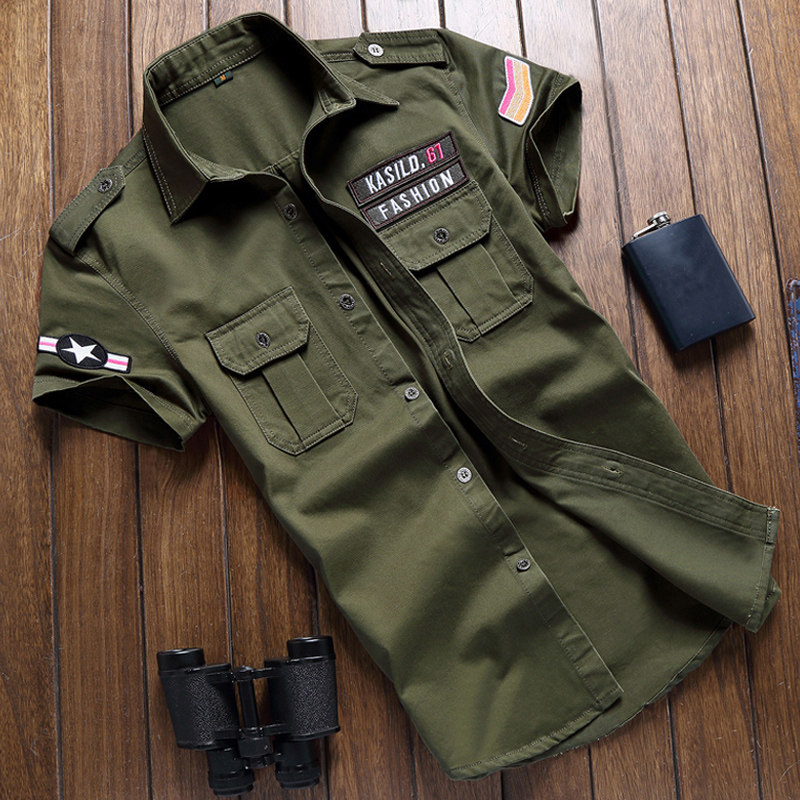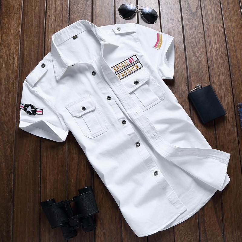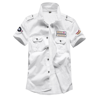 制服意大利外穿抗皱军装 徽章帅气商务空军夏季 男半袖 衬衫 外套 短袖