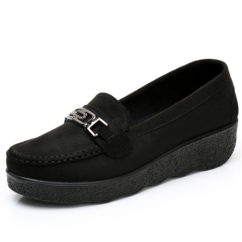 女鞋 老北京布鞋 单鞋 厚底坡跟软底黑色工作鞋 新款 女松糕豆豆鞋 春季