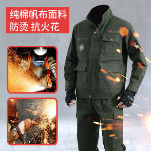 纯棉工作服套装 男春秋加厚劳保服汽修电焊工防烫耐磨工地建筑工装