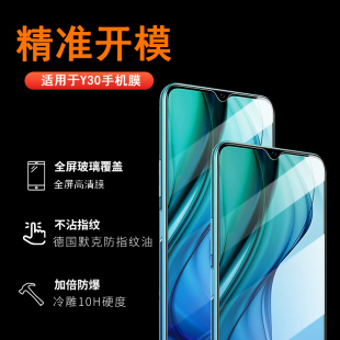 霸业适用vivoy30钢化膜y3s全屏覆盖y3手机膜抗蓝光viviy高清防摔指纹vovi步步高5g版 标准viv0y无白边丫30贴膜