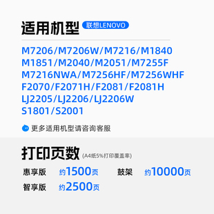 M7255 LJ2206 M7256whf M1851墨盒F2081 S1801硒鼓LT201墨粉盒 天色适联想M7206w硒鼓M7216nwa F2070 LJ2205