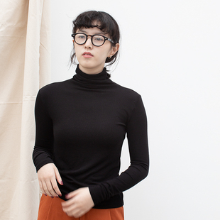 春秋冬修身 长袖 软糯毛衣套头女 高堆堆领针织打底衫 殳十原创设计