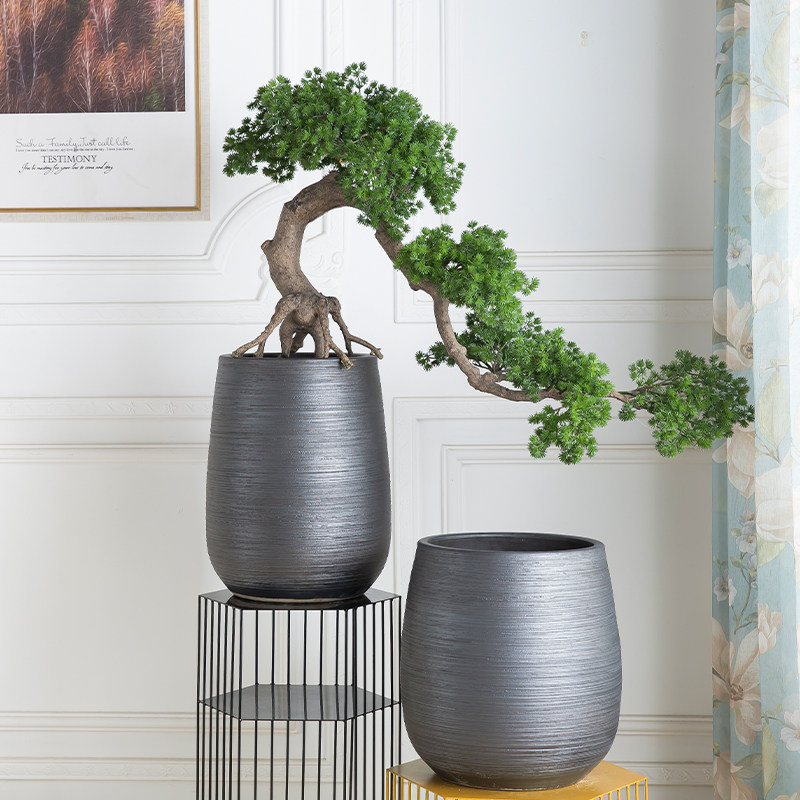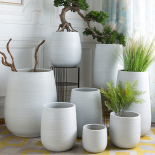 水泥花盆2022新款 圆形落地创意高颜值家用客厅落地庭院天堂鸟盆器