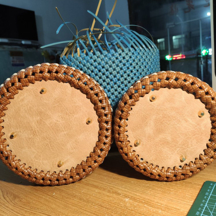 编织包diy皮革配件handmade带标仿真皮包底毛线藤条手工钩织包底