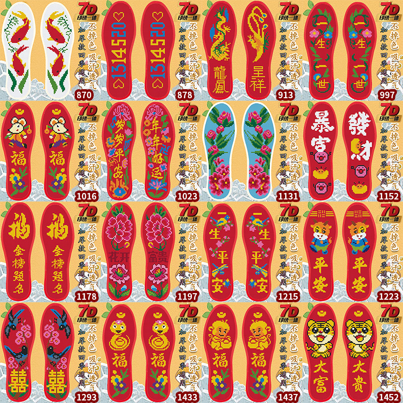 垫印花针孔半成品棉吸汗男女平安幸福本命年批发喜庆 十字绣鞋 包邮