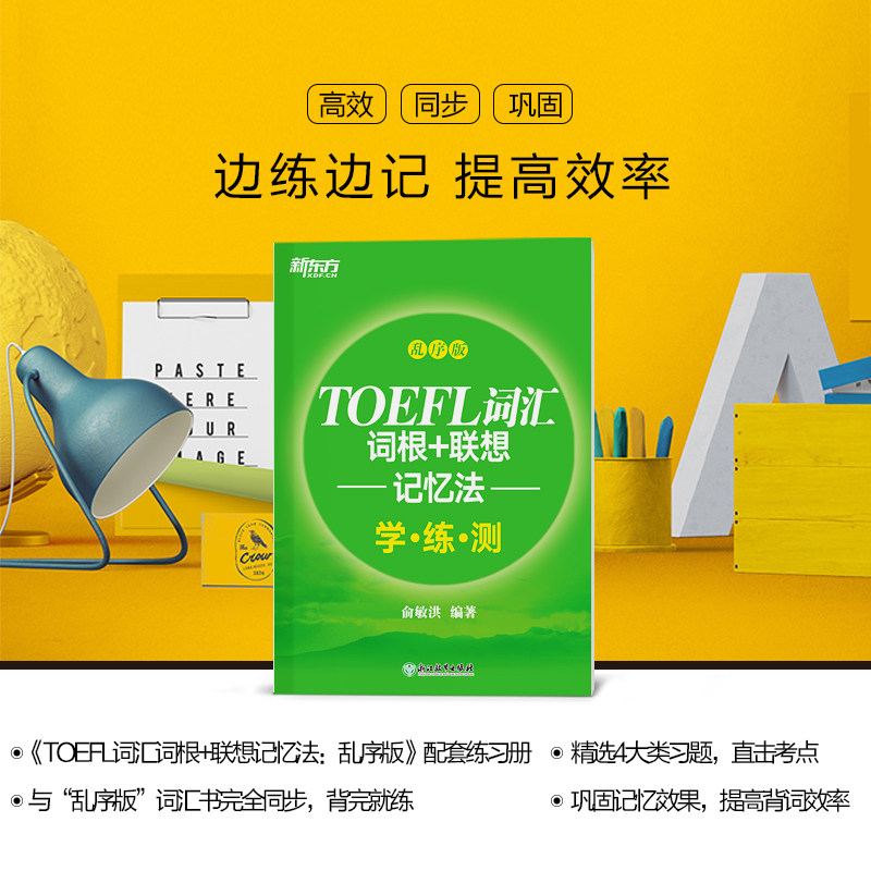 联想记忆法 TOEFL词汇词根 乱序版 学练测 美国出国留学考试 托福新东方宝书绿书籍同步练习配套书籍 新东方官方旗舰店