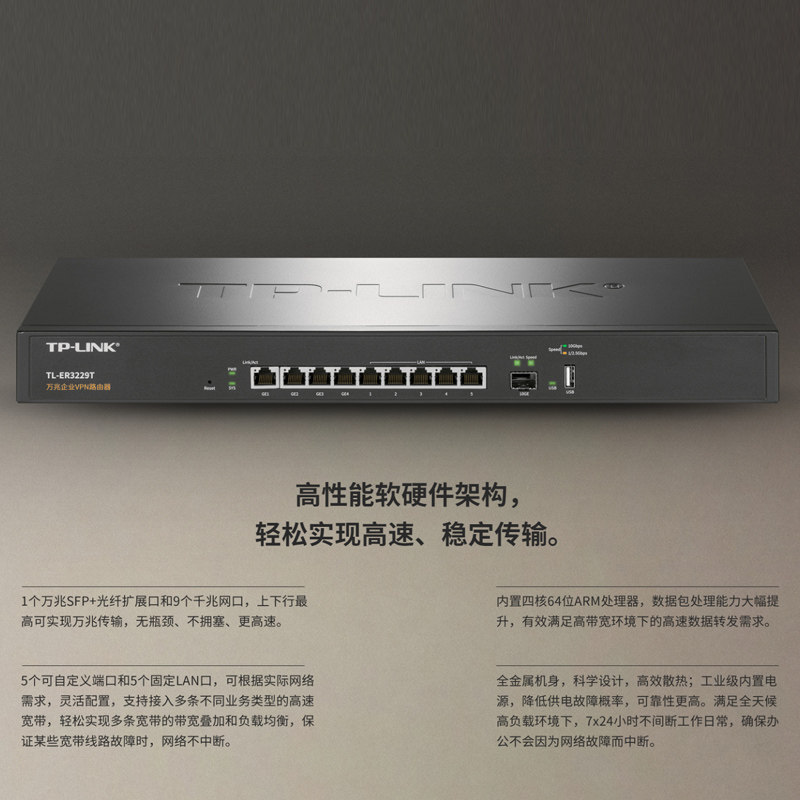普联TP ER3229T LINK万兆有线路由器多WAN口9口10G千兆SFP光纤口5口企业级商用VLAN划分AC管理tplink网关TL