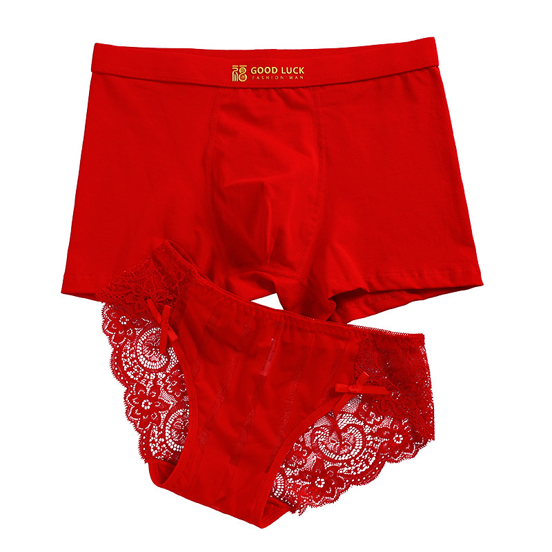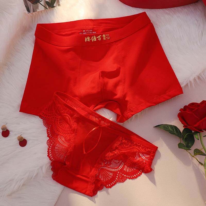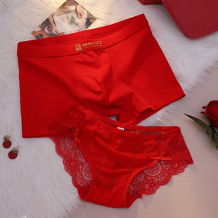 结婚情侣一对本命年一男一女纯棉内衣夫妻套装 甜米家 红色内裤