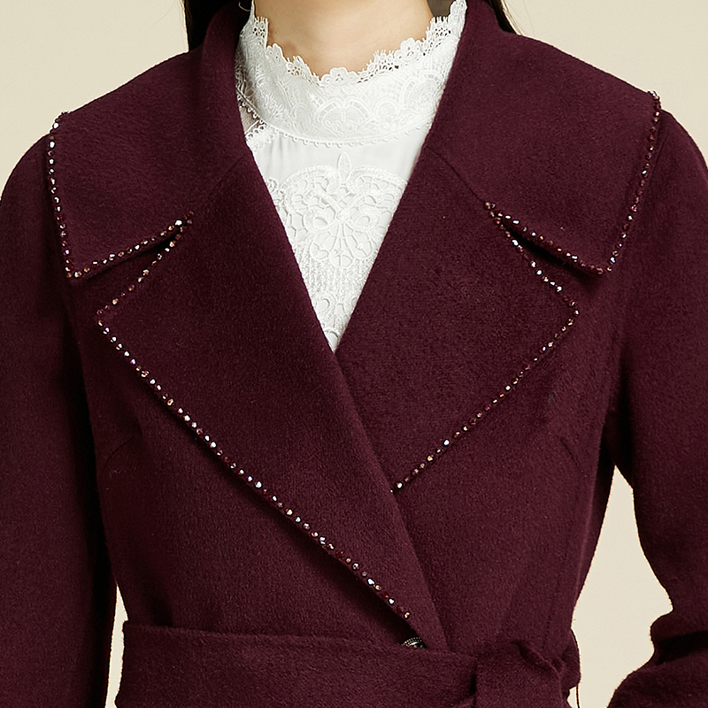 酒红色翻领双排扣双面呢束腰长款 新品 大衣外套女 古色22冬季 SUSSI