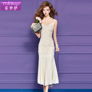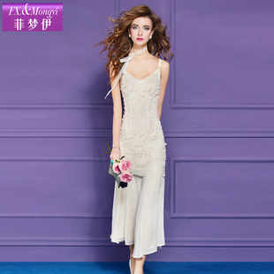 轻熟性感气质修身 法式 礼服裙 新款 菲梦伊蕾丝白色吊带连衣裙女夏季