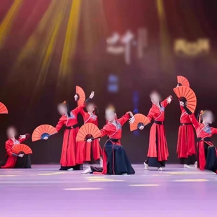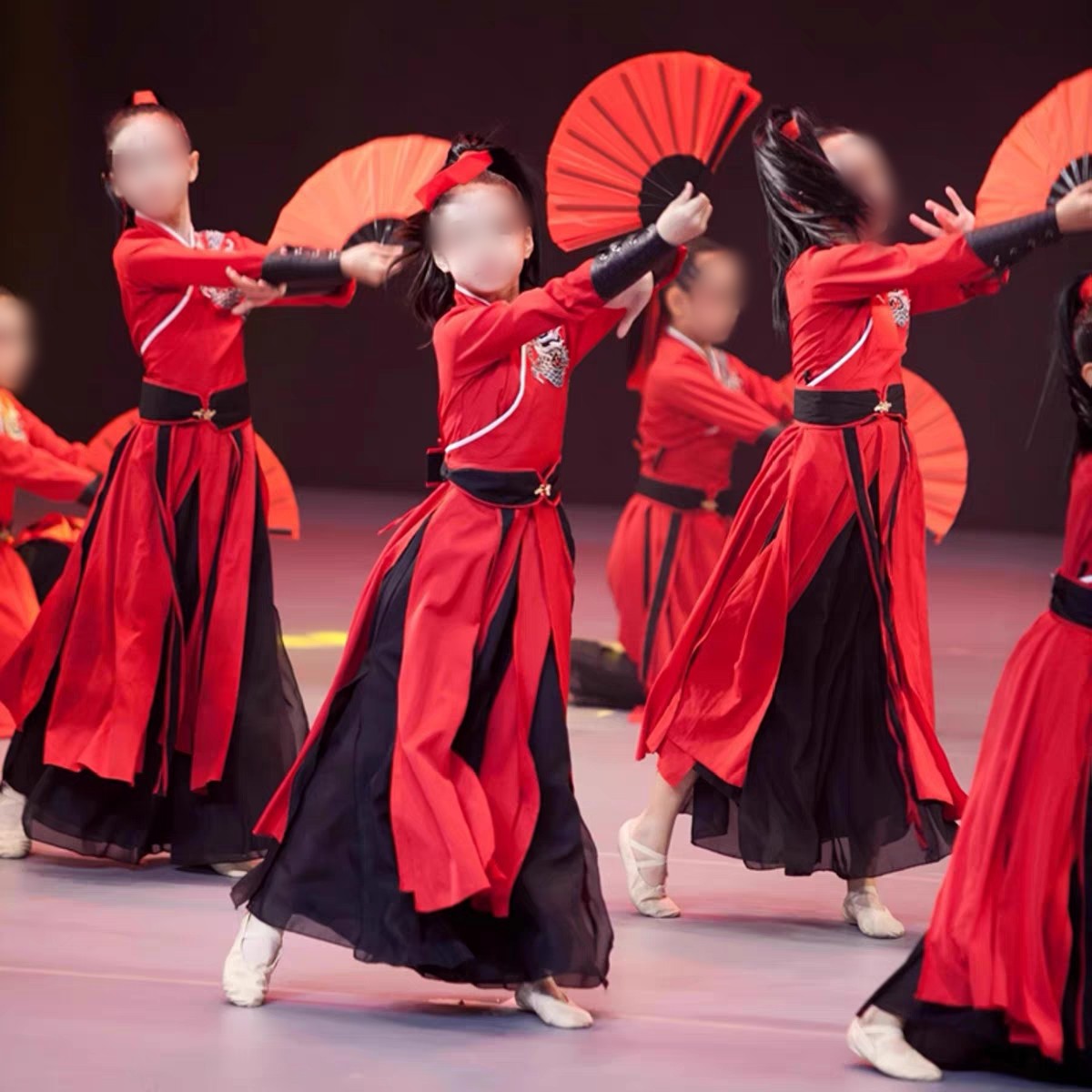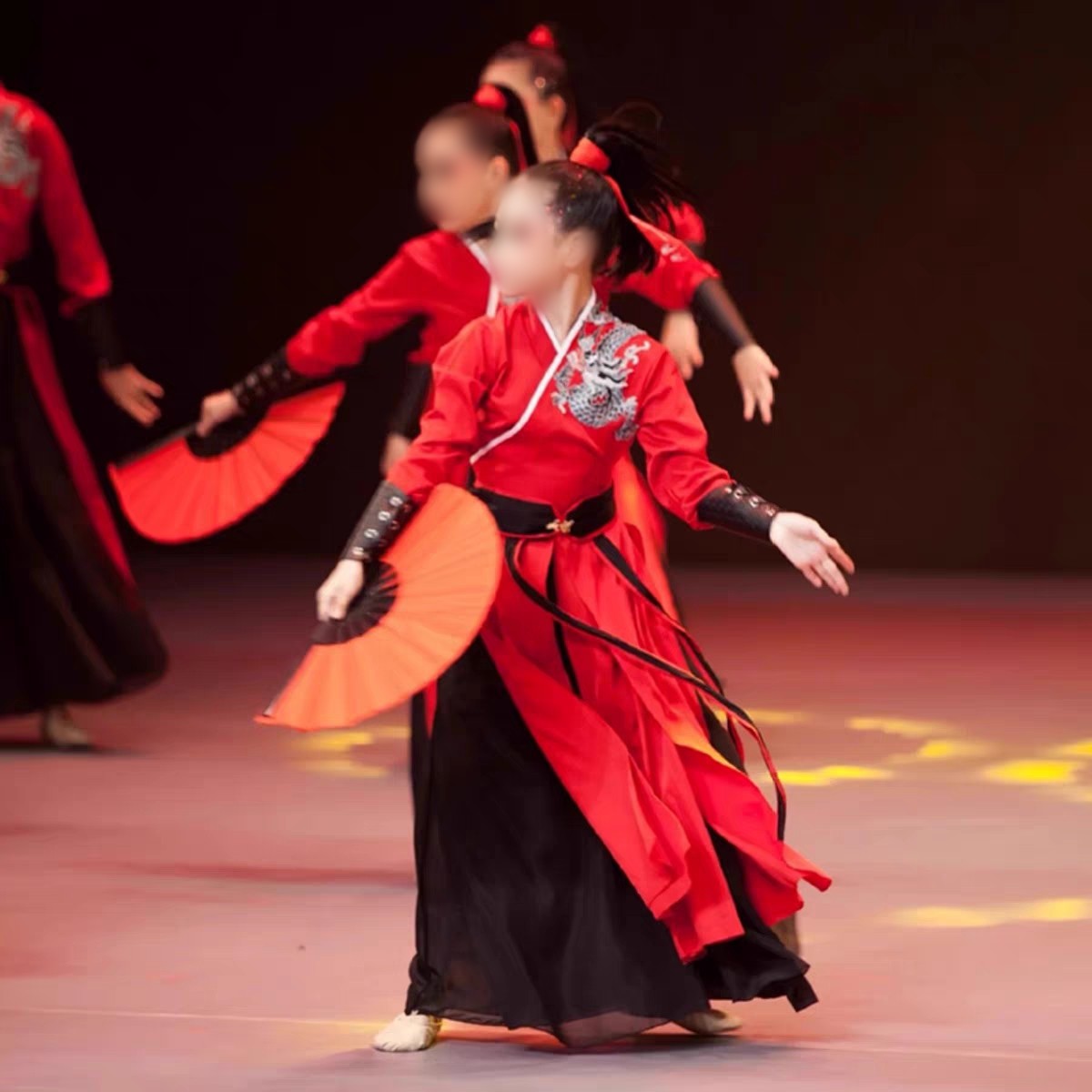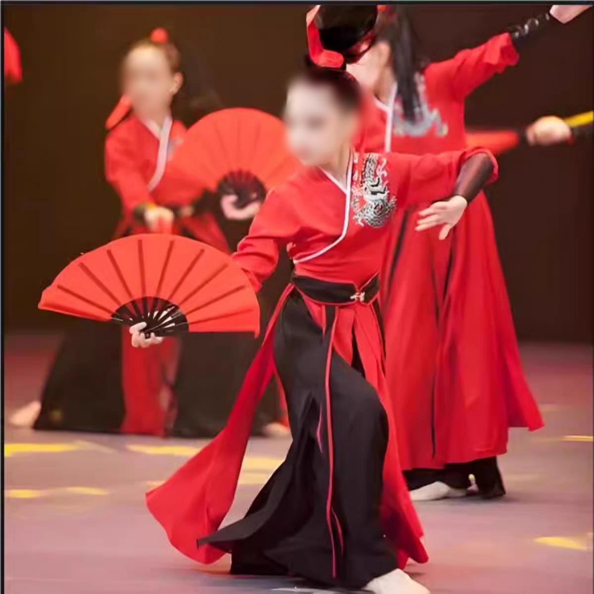 元 旦表演服儿童喜庆演出服男女童中国风红色过年服拜年服合唱汉服