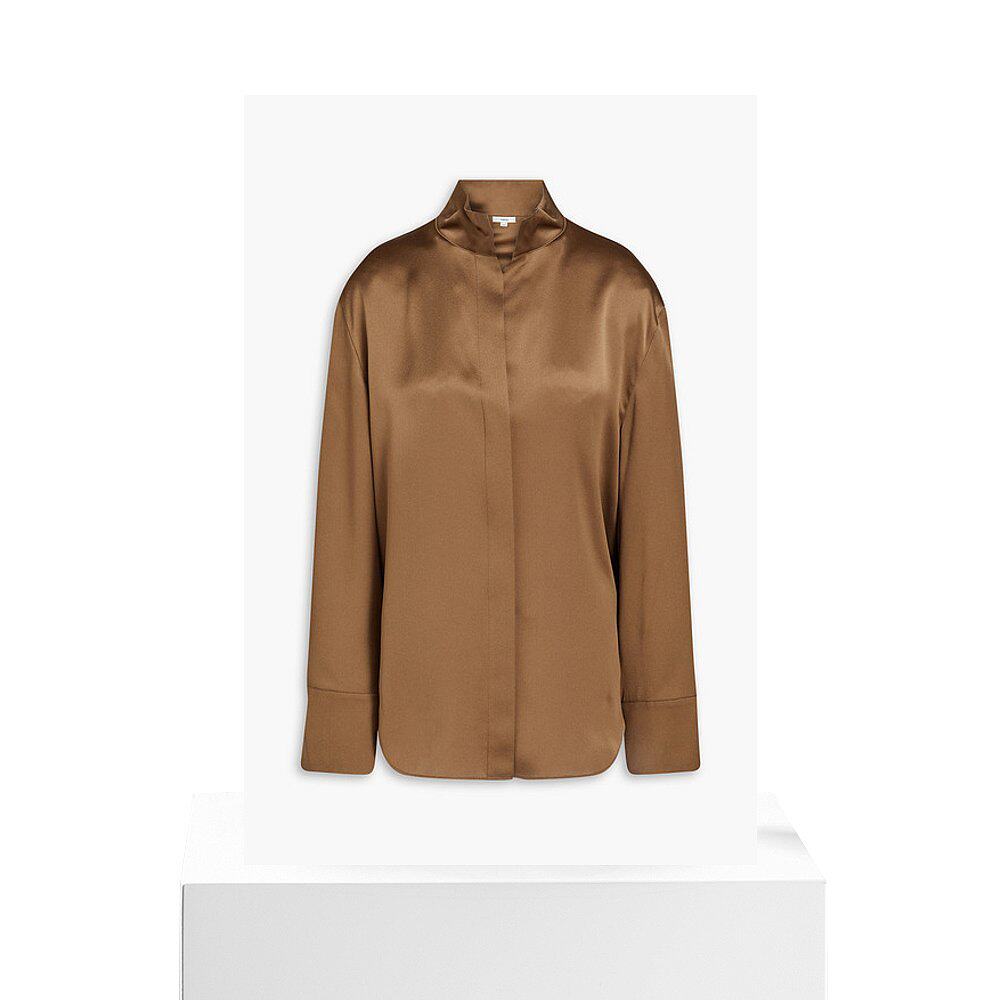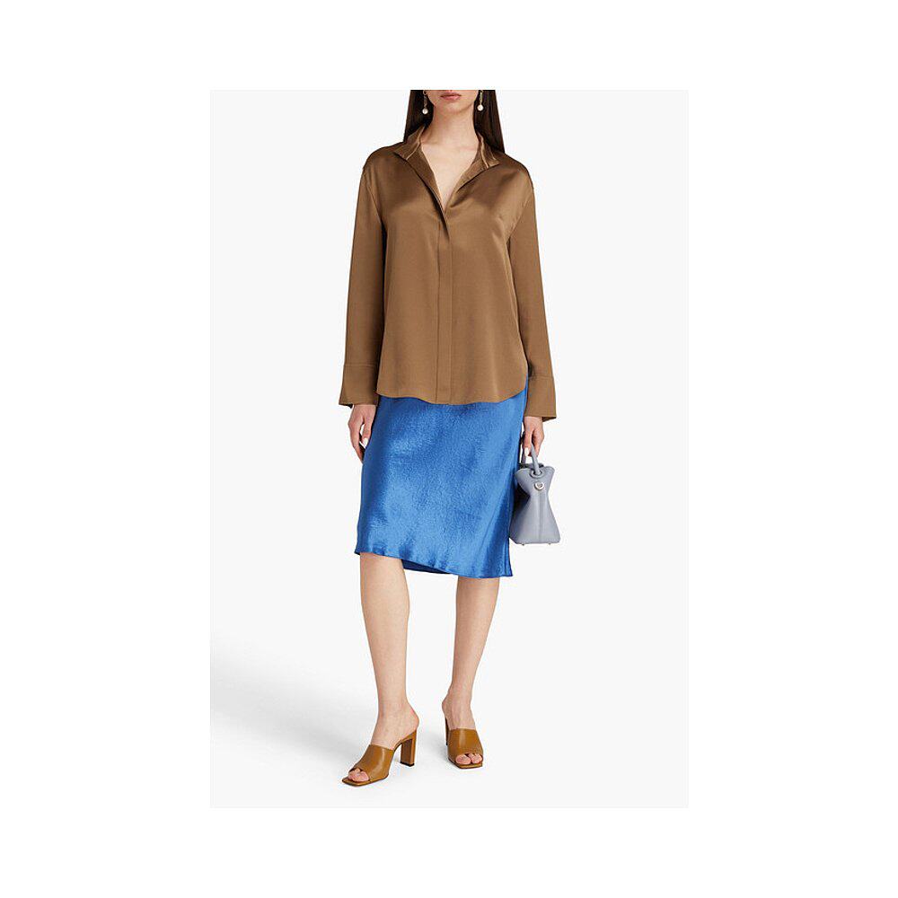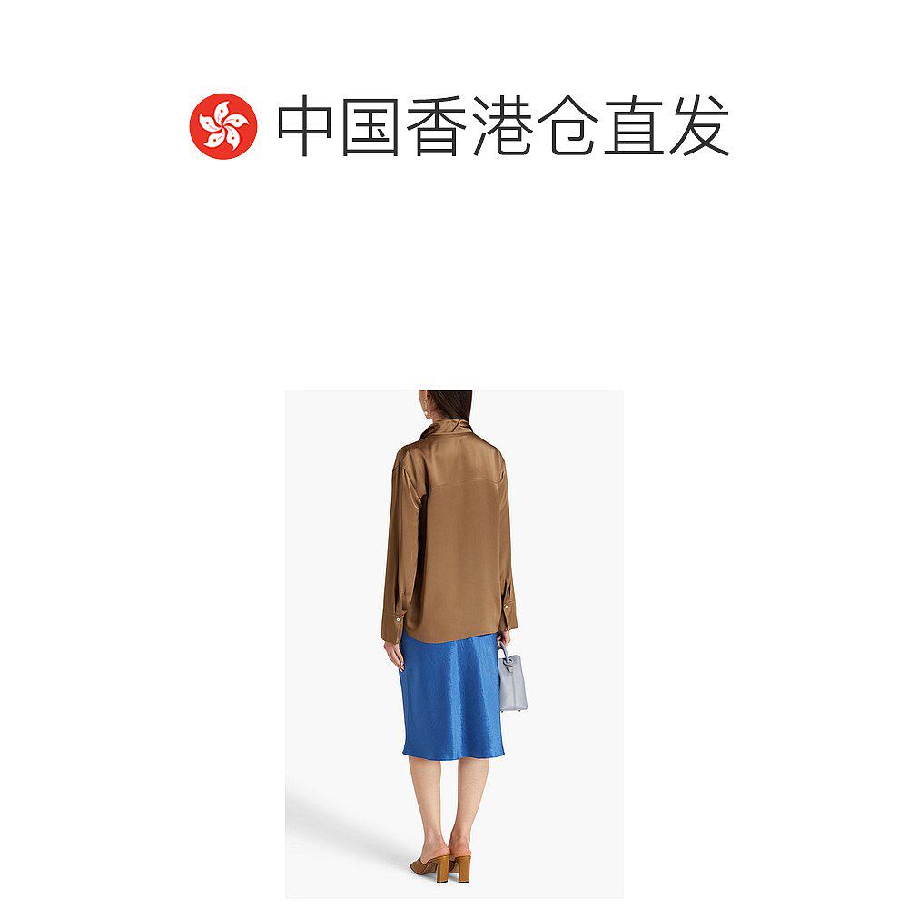 brown棕色 香港直邮VINCE V968412829 褶裥真丝缎衬衫 舒适 女士