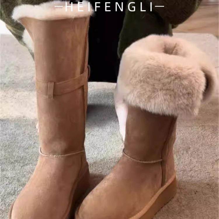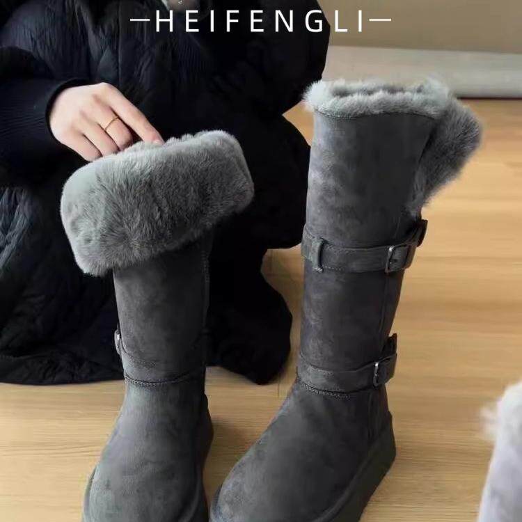 加绒加厚厚底雪地靴女 新款 真皮保暖长靴皮毛一体雪地棉鞋 2025冬季