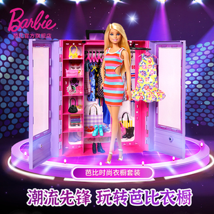 公主儿童过家家玩具 礼盒套装 芭比娃娃Barbie梦幻时尚 衣橱穿搭换装