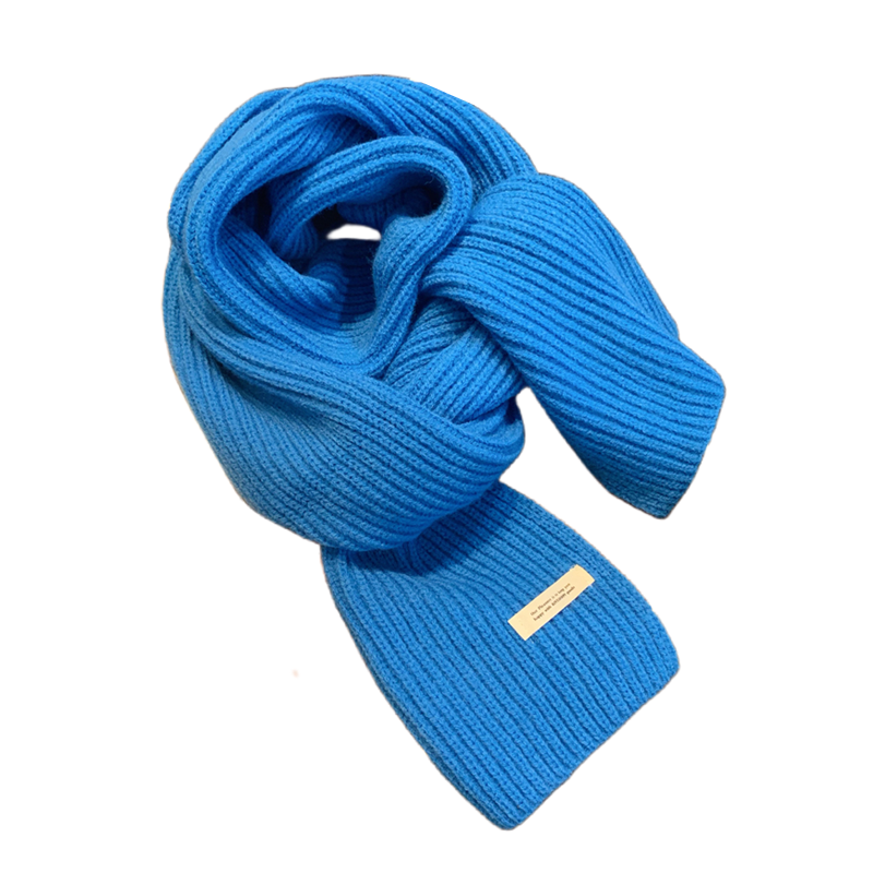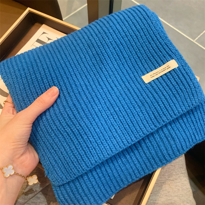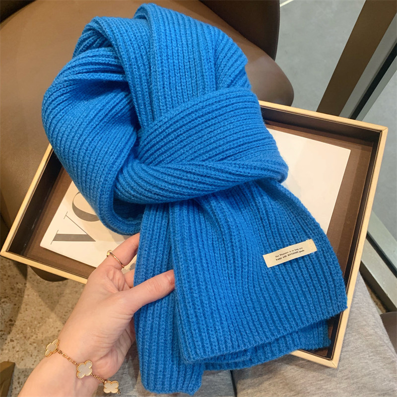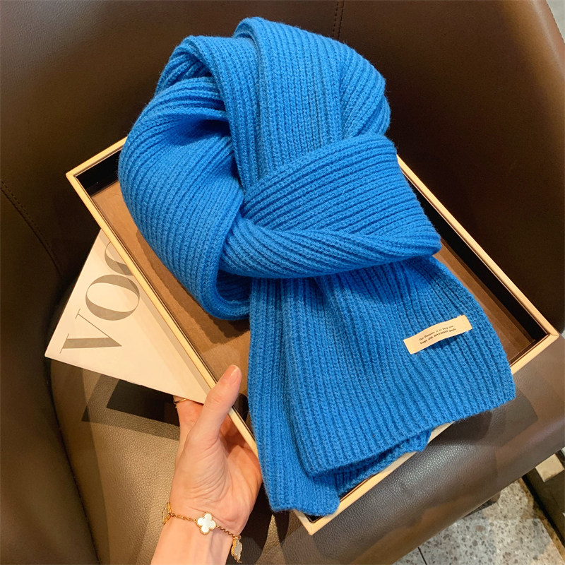 韩系显白蓝色针织围巾女冬季 纯色百搭ins学生保暖毛线围脖潮 韩版